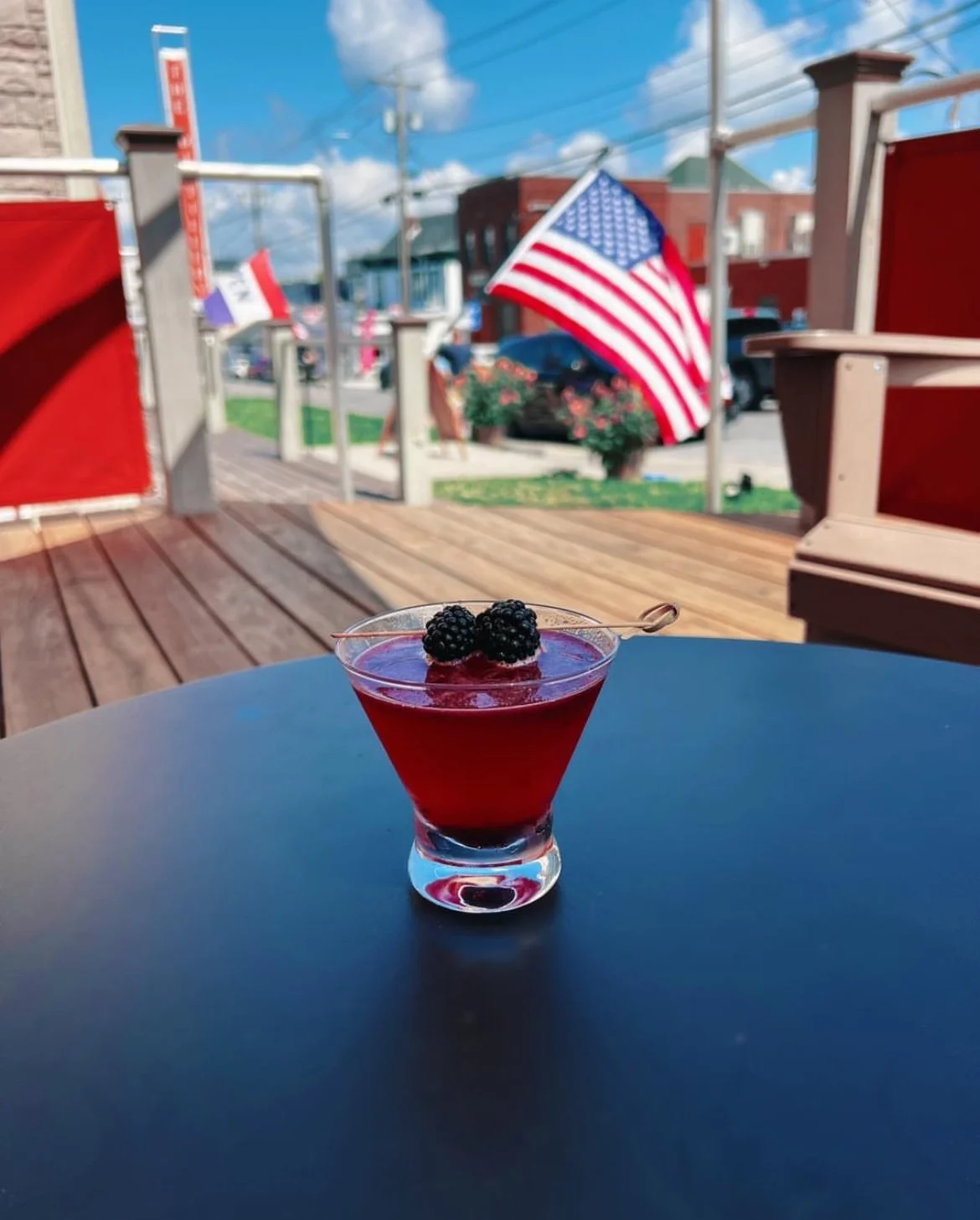 Muddle 2 blackberries in a shaker. Add ice, Vodka, Triple Sec, lime juice & cranberry. Shake well until chilled then strain to martini glass. Garnish with 2 blackberries skewered.